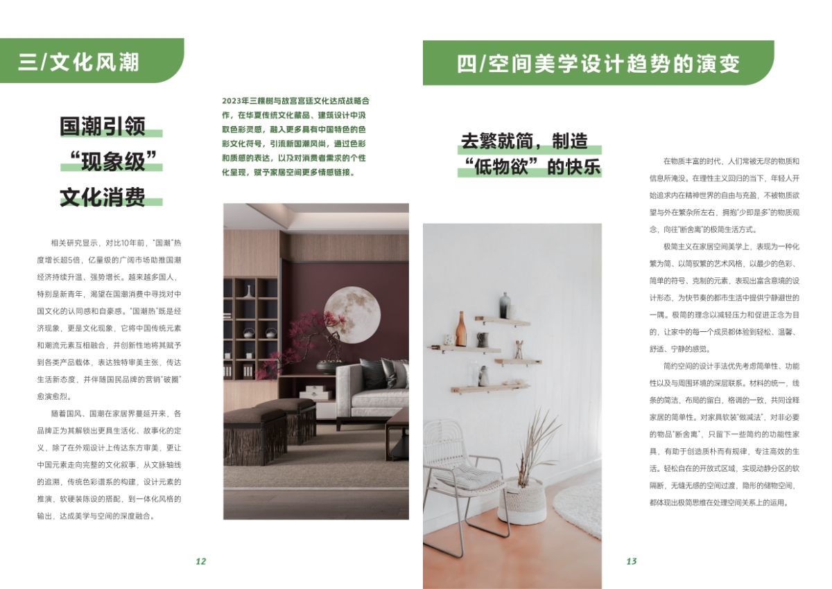隨著房地產市場的成熟與消費者需求的多元化,家居美學設計迎來前所未有的發展機遇。政府層面,《推動大規模設備更新和消費品以舊換新行動方案》等政策的出臺,進一步激發了家裝市場的活力,促進了家居消費品的更新換代和市場的優化升級。在此背景下,三棵樹報告的發布恰逢其時,它不僅是對當前市場趨勢的精準把握,更是對未來家居美學設計趨勢的前瞻性預測。