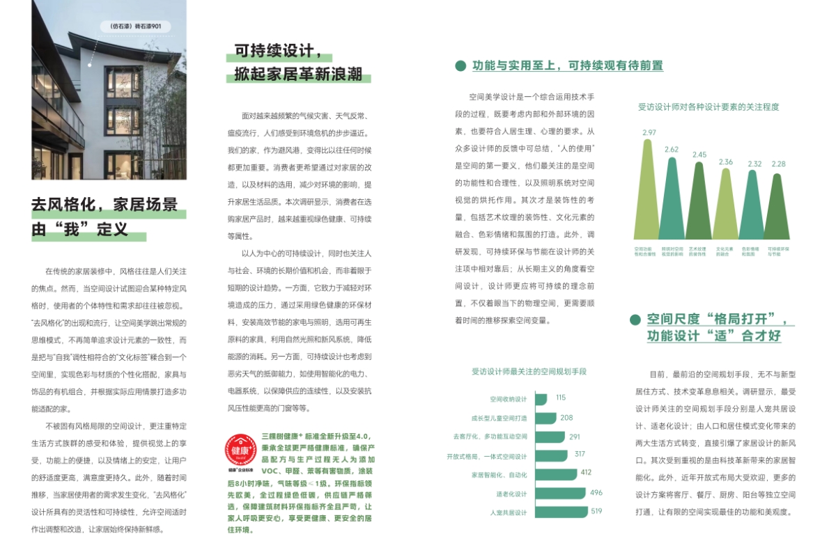 在報告發布之際,多位知名設計師也表達了對空間美學設計的見解。他們普遍認為,在多元化與個性化的消費趨勢下,家居設計需更加注重功能與實用性的平衡,同時融入個性化的審美元素。