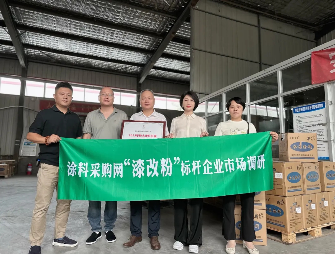 涂料采購網調研組張馨元(右二)探訪“漆改粉”標桿企業廊坊亞美