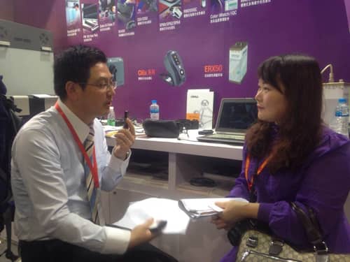 在本屆展會上,愛色麗帶來了經(jīng)典的i5系列臺式機和非接觸式VS450,據(jù)悉,非接觸式VS450這款產(chǎn)品應(yīng)用范圍很廣泛,最大的優(yōu)勢就是可以不接觸到測試樣品,即可測出產(chǎn)品的具體顏色指數(shù),所以這款產(chǎn)品目前在市面上銷售很好。另外一款在生產(chǎn)線上應(yīng)用非常廣泛的一款產(chǎn)品,在線測量顏色的一款儀器,這款產(chǎn)品應(yīng)用在各行各業(yè),譬如,涂料、彩鋼的這些卷材板材的流水線上對顏色的一個管控,另外,像造紙、紡織、織布、印染這些行業(yè)的應(yīng)用也是非常廣泛,愛色麗對這款產(chǎn)品寄予了比較高的期望。