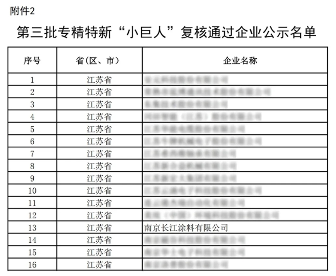 近日,江蘇省工信廳發布了國家工業和信息化部第六批專精特新“小巨人”企業和工業和信息化部第三批專精特新“小巨人”復核通過企業名單,長江涂料通過第三批國家級專精特新“小巨人”企業復核!