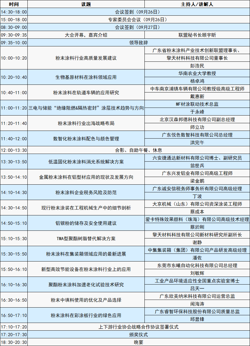 讓我們共同期待這場思想盛宴,讓每一位參與者都將從中收獲滿滿的知識財富與精神啟迪。在粉末涂料行業這片廣闊的藍海上,我們將攜手前行,共同開創環保綠色的未來!欲了解更多具體行程安排,歡迎聯系會務組溝通。