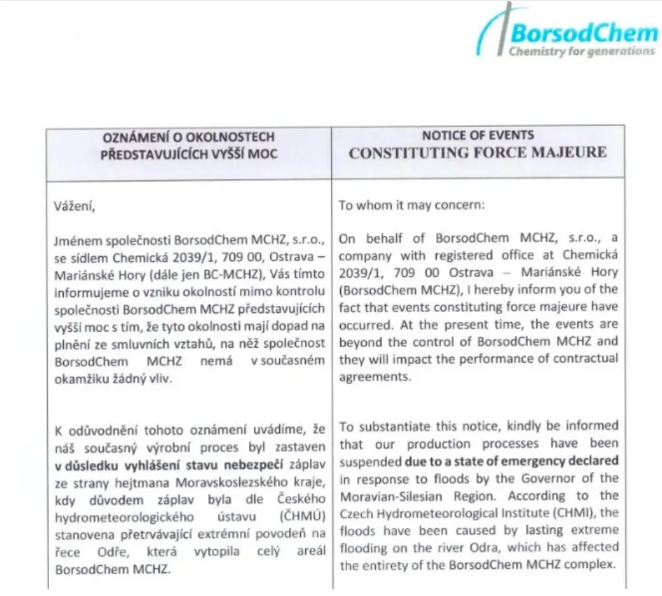 寶思德(捷克)公司正式發布不可抗力公告,其中MDI原料苯胺裝置受影響,工廠停車。而位于匈牙利工廠的MDI裝置受原料供應問題,低負荷運行,涉及產能40萬噸,直接導致萬華10月或緊急提升對歐洲的調貨,本月停止接單。