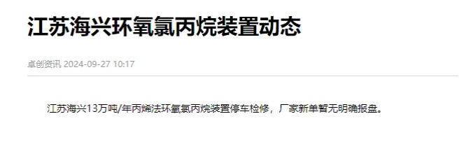 業內人士表示,這次的停產檢修或將耗時良久,環氯的價格也有望隨著供給縮水而迅速上調。而下游假期后的采購也會加速,疊加此次的停產事件,下游的環氧樹脂、涂料、電子等行業,乃至工業和建筑領域的原材料配貨都會陷入短缺,整條產業鏈將在金九銀十迎來斷貨和漲價的雙重打擊。