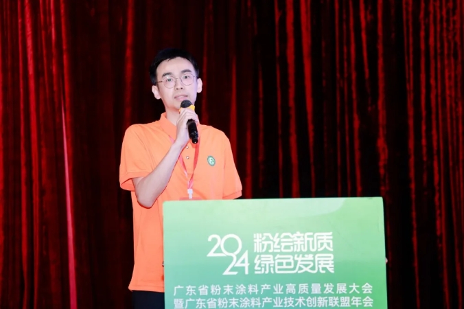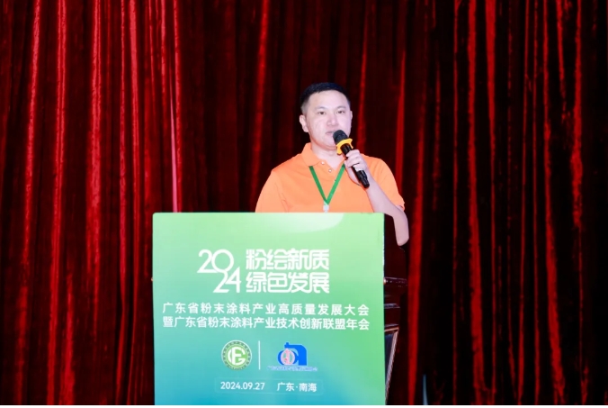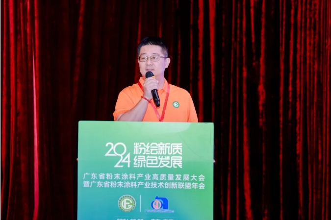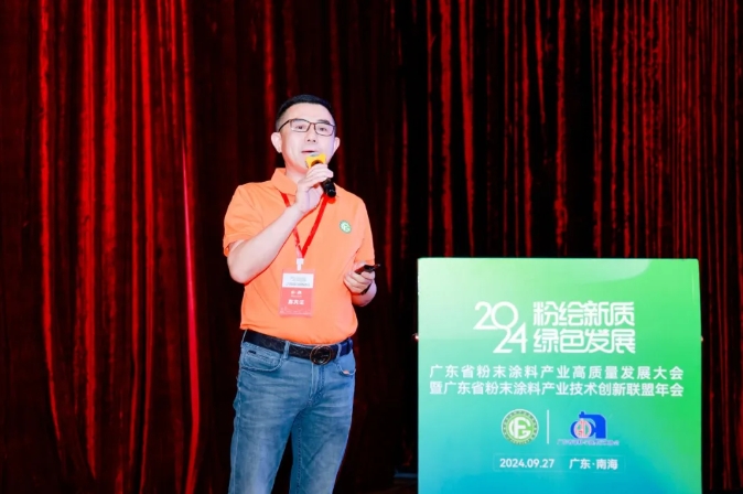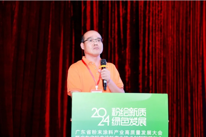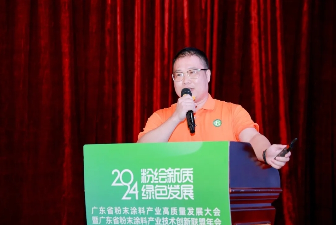 劉敏輝做《新型高效節(jié)能設(shè)備在粉末涂料行業(yè)上的應(yīng)用》報(bào)告