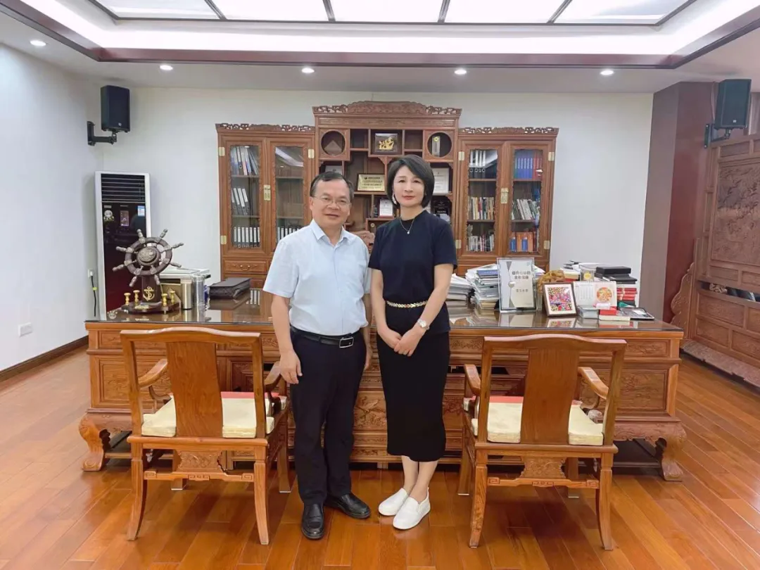 涂料采購網張馨元(右)到訪巴德士并與董事長方學平(左)合影