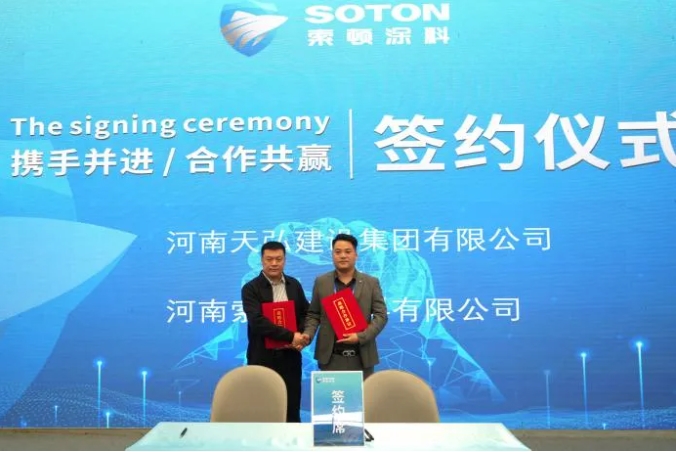 而后,索頓涂料與河南省第一防腐工程有限公司進行簽約,攜手共創防腐新視界。