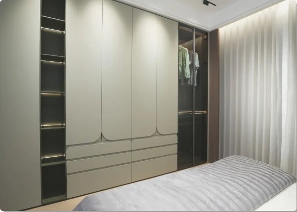 定制衣柜采用溫潤(rùn)弧形免拉手設(shè)計(jì)