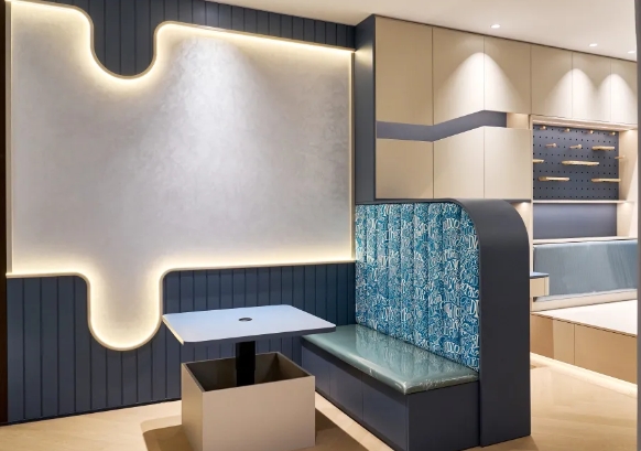 空間過(guò)渡采用曲線、波蘭、內(nèi)嵌等造型工藝