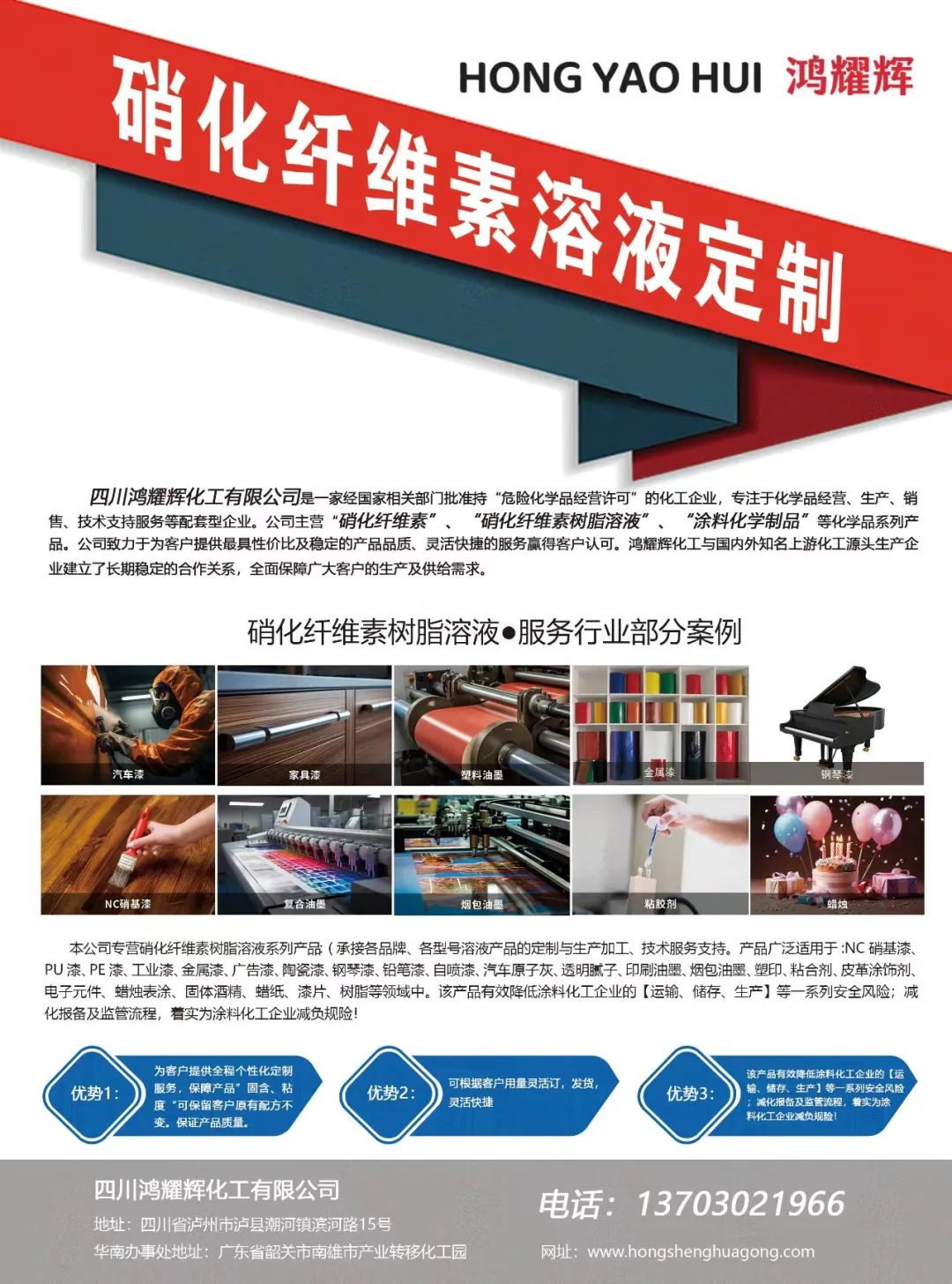 在這一背景下,四川鴻耀輝化工有限公司(以下簡稱“鴻耀輝化工”)憑借其敏銳的市場洞察力和深厚的技術積累,積極響應國家號召,深入探索涂料企業在安全生產方面的實際需求。經過長時間的研發與試驗,鴻耀輝化工推出了一款革命性的產品——硝化纖維素樹脂溶液。