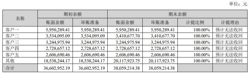金力泰中報(bào)顯示,前五大客戶計(jì)提的3000多萬(wàn)壞賬預(yù)計(jì)無(wú)法收回。
