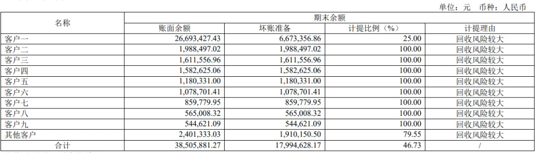 東來(lái)技術(shù)中報(bào)顯示,多位客戶100%計(jì)提的壞賬回收風(fēng)險(xiǎn)較大,預(yù)計(jì)無(wú)法收回的壞賬1700多萬(wàn)。