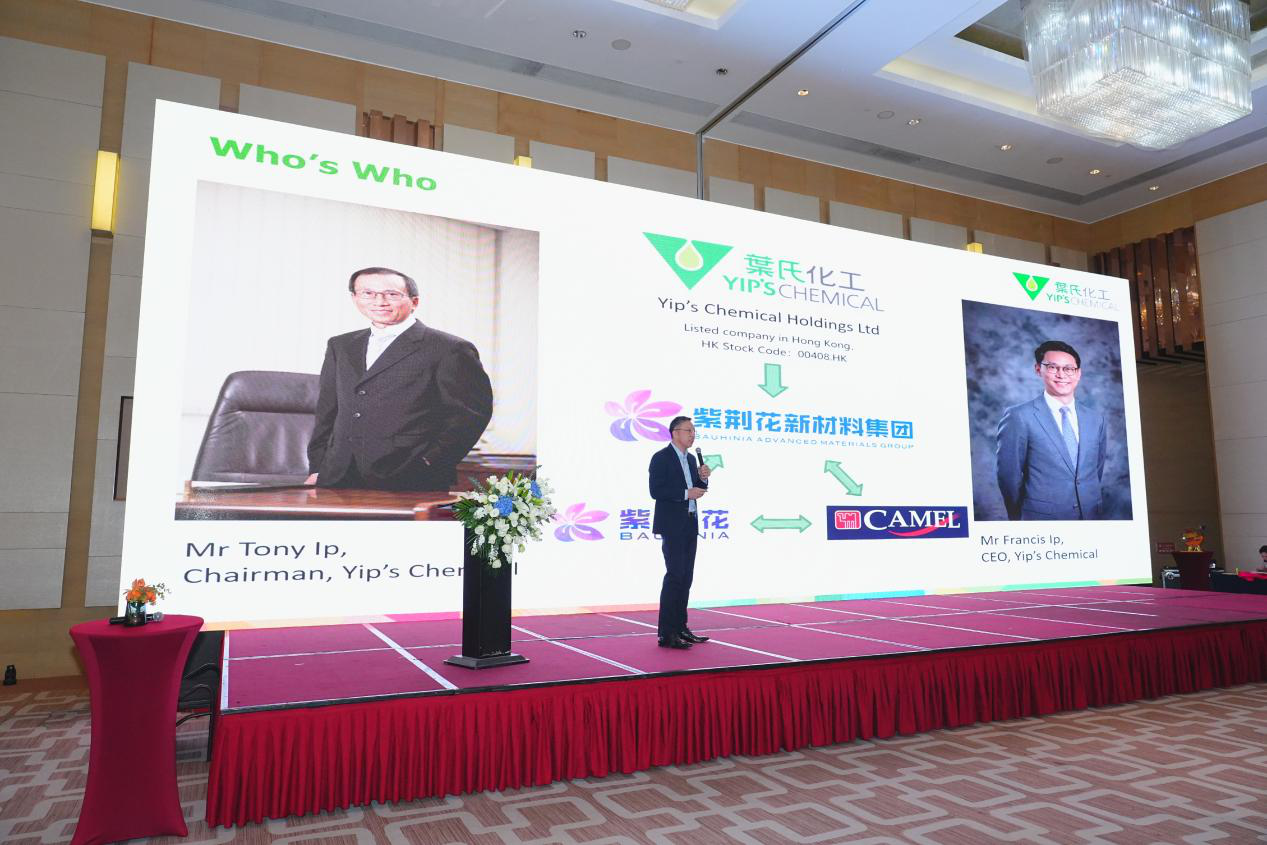 紫荊花新材料集團聯(lián)席總裁馮秉光先生代表葉氏化工和紫荊花新材料集團進行精彩發(fā)言,馮總詳細介紹了葉氏化工集團及紫荊花新材料集團的業(yè)務(wù)架構(gòu)和公司實力,并對紫荊花和駱駝漆兩個品牌做了重點推介,馮總還向與會嘉賓詳細介紹了紫荊花新材料集團的涂料對外貿(mào)易業(yè)務(wù)的合作模式及核心優(yōu)勢,吸引力眾多嘉賓的合作意向。
