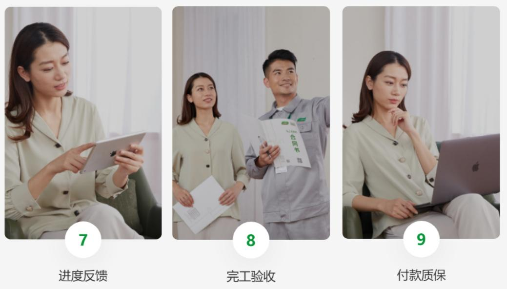 施工過程中,專業人員持證上崗,遵循標準化家居定制解決方案,確保每一個施工細節,非施工區域還會進行全方位遮蔽保護。同時,APP、云管家、小程序三大專業系統實時監管,讓您隨時了解施工進度。三棵樹馬上住煥新一站式服務有著嚴格的服務承諾:不使用不環保材料、不減工序、不增項目……完工后,三棵樹安排管家式協同驗收,6大節點28項驗收指標,還有安心質保365天,1年內免費上門售后,讓每一位用戶都能享受到361°滿意服務。