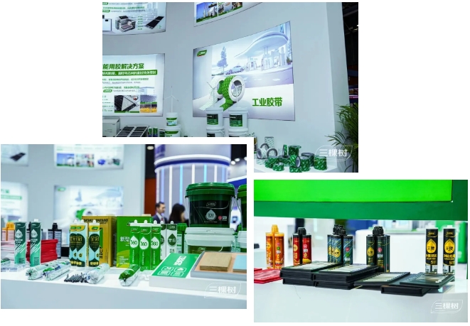 建筑民用膠、建筑工程膠、全屋美縫及新能源膠產品在展會驚艷亮相。本次展會展出的工業膠帶及風電、光伏、儲能用膠等系列產品均獲得高度關注。三棵樹健康膠全粘合系統解決方案不僅提升了三棵樹健康膠的產品競爭力,滿足消費者多元化需求,更為行業健康發展注入了強勁動力。