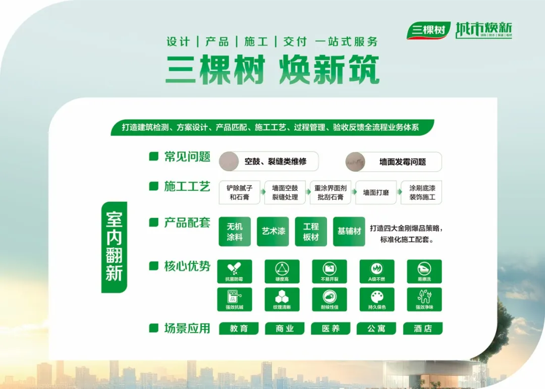城市煥新,不僅是時代使命,更是財富機遇!三棵樹誠邀遠見者同行,共享萬億煥新市場紅利,讓每一次合作都成為城市升級和締造美好生活的點睛之筆。
