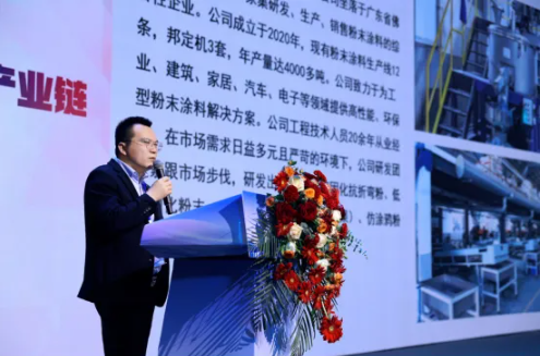 張總現(xiàn)場為大家深度介紹了金三閣卷鋼卷材粉末涂料的優(yōu)勢: