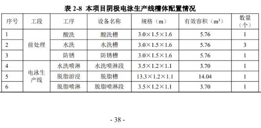 本項目配備全密閉、自動化電泳生產線,生產線槽體均架空敷設,離地高度約 0.6m,生產線設置干濕分離。本項目電泳生產線槽體配置情況如下: