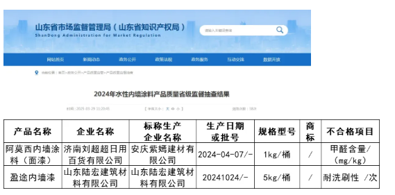 山東省市場(chǎng)監(jiān)管局公布2024年建筑涂料產(chǎn)品質(zhì)量省級(jí)監(jiān)督抽查結(jié)果,涉及4批次涂料不合格。