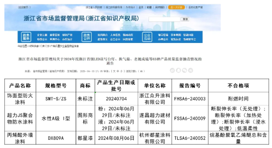 浙江省市場(chǎng)監(jiān)督管理局發(fā)布產(chǎn)品質(zhì)量監(jiān)督抽查不合格且逾期未改正的企業(yè)及相關(guān)產(chǎn)品公告(2025年第2批),涉及不合格涂料1批次。