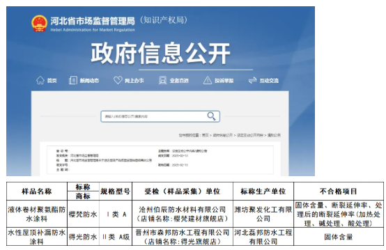 河北省市場(chǎng)監(jiān)督管理局發(fā)布關(guān)于送達(dá)省級(jí)產(chǎn)品質(zhì)量監(jiān)督抽查結(jié)果的公告,涉及不合格涂料2批次。
