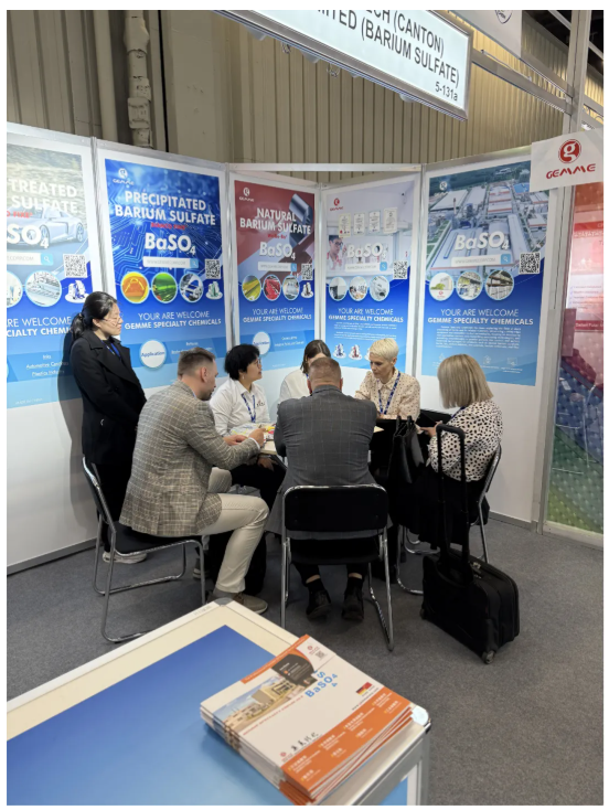集美精化于本次展會的重點產品Gemme MikroFixe系列納米級表面處理硫酸鋇陣營,采用全新的液流微通道反應控制技術,極限粒徑尺寸20nm級別的BF-20、無機氧化物多層復合包膜處理的GM-100、BIANCFISSO等專用型新產品,極度均勻統一的粒徑范圍、非凡的應用透明度、強大的自分散性能、卓越的涂層流平觸變性、高達99的L亮度值,以及近乎100°的超高涂層光澤性……無不令BASF、Akzo.Nobel、Juton等歐洲涂料前輩高度贊譽。