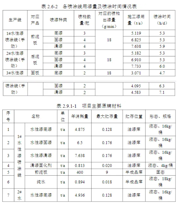 本項目1#、2#水性漆噴涂線各設置3個底漆水簾噴臺、4 個面漆水簾噴臺,4個清漆水簾噴臺,每個噴臺設置1把噴槍。底漆、面漆、清漆可同時噴涂。