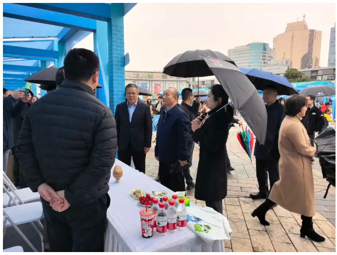 生態環境部固體司副司長溫雪峰,浙江省生態環境廳副廳長周樹勛與新福鈦白粉現場人員親切交流