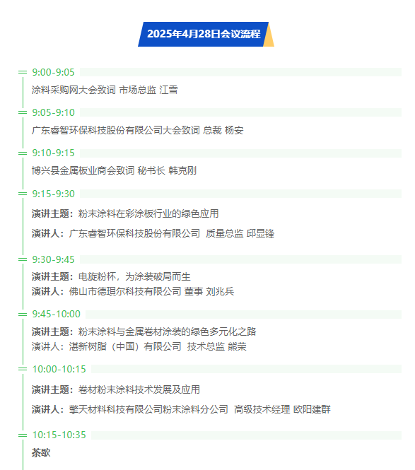 目前,大會報名通道已持續升溫,數百家企業踴躍參與,名額即將滿額。如果您是彩涂板產業鏈上的從業者——無論是鋼鐵鋁卷生產、涂料研發制造、涂裝設備供應,還是終端應用與工程服務——這場匯聚500+精英的行業盛會,都將為您提供不可錯過的交流平臺、技術洞察與合作機遇。4月28日,讓我們相聚山東博興,共同見證彩涂板行業全產業鏈協同發展的歷史性時刻,攜手開創綠色低碳、創新驅動的新未來。