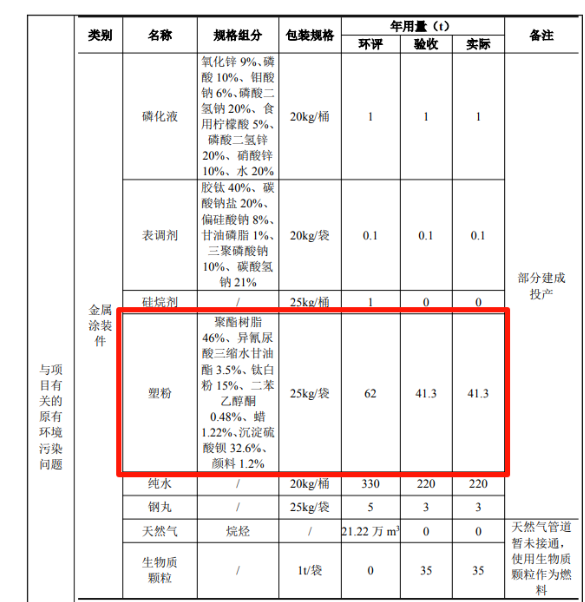 根據(jù)公開消息顯示,該項(xiàng)目年用塑粉41.3噸,配備1臺(tái)噴涂要機(jī)。