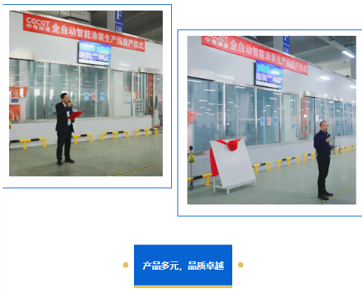 在投產儀式上,中電二公司高級副總惠文榮先生、中電環境裝備事業部生產副總孫震先生、中電創達總經理王興旺先生以及各界嘉賓齊聚一堂,共同見證了這一激動人心的時刻?;菸臉s先生在致辭中表示,新噴涂線的投產是集團公司加大技術創新投入、提升產品競爭力的重要舉措,未來將繼續秉持創新驅動、質量至上的理念,為客戶提供更優質的產品和服務。隨后,嘉賓們共同為首塊產品下線舉行了戴花儀式,并參觀了新產線的生產過程,對其先進的設備和高效的生產能力給予了高度評價。