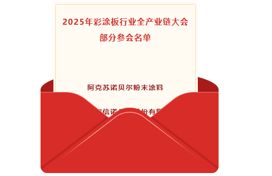 目前,本次大會報名人數(shù)已接近500人,匯聚卷鋼廠家、卷鋁廠家、地方政府、環(huán)保部門、商會、彩涂板經(jīng)銷商、工程公司、涂料企業(yè)、涂裝廠家以及上游原材料企業(yè)等全產(chǎn)業(yè)鏈各環(huán)節(jié)的頭部企業(yè)。
