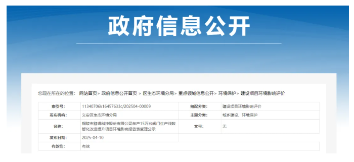 近日,義安區生態環境分局發布銅陵市肆得科技股份有限公司年產15萬臺閥門生產線數智化改造提升項目環境影響報告表受理公示。