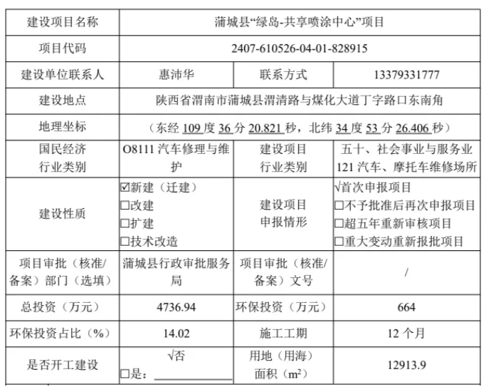 項目名稱:蒲城縣“綠島-共享噴涂中心”項目