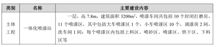 項目概況:該項目位于蒲城縣渭清路與煤化大道路口,占地面積約12913.9m2.總建筑面積 8600m2.主要建設包括一體化噴漆站 3200m2(包括 10 個打磨區(qū),10 個家用車噴漆區(qū)及 1 個卡車噴漆區(qū)),1 座 5 層綜合樓,用于汽車修理(僅涉及車輛保養(yǎng)維護)、辦公及汽車配件銷售等,建設營業(yè)性小車充電站和貨車充電站。同時配套改造占地范圍熱力管道以及建設相應的公用工程和環(huán)保工程。該項目總投資為4736.94萬元,其中環(huán)保投資664萬元,占總投資14.02%。