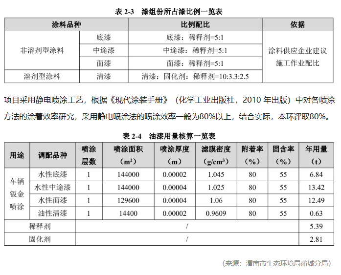 本項目為鈑噴共享中心,主要為蒲城縣主城區(qū)范圍內的汽車提供噴漆服務。汽車面漆用的油漆更注重油漆的自然屬性和商品屬性,尤其是高端品牌的汽車。水性漆不具備油性漆的重要自然屬性:即漆的硬度,韌性,耐水性,耐酸堿鹽性,耐溶劑化學品酸堿鹽腐蝕性,耐老化性和抗沖擊性,耐低溫性,其次也沒有油性漆的好商品屬性,滿足不了人們對它的審美要求。目前汽車廠商也在根據(jù)國家環(huán)保的有關要求及客戶需求進行平衡及工藝提升,逐步取替油性漆的使用,但是目前噴漆廠對于汽車面漆使用水性漆進行噴涂達不到現(xiàn)市場的要求,故噴漆廠的汽車面漆油性漆替換成水性漆仍需要時間進行過渡。