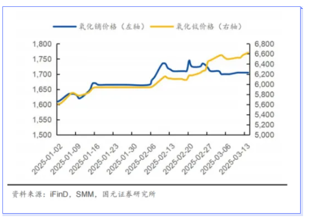 緬甸礦進口短期內或難以恢復,稀土原材料供應仍將保持緊張,緬甸礦進口困難對中重稀土的影響尤為明顯。同時,我國對稀土開采管理愈加嚴格,稀土原料供給或長期趨緊。輕稀土主要用作永磁材料,廣泛應用于新能源汽車、風電、空調、機器人等領域,海外供給和下游需求景氣度直接影響稀土價格。
