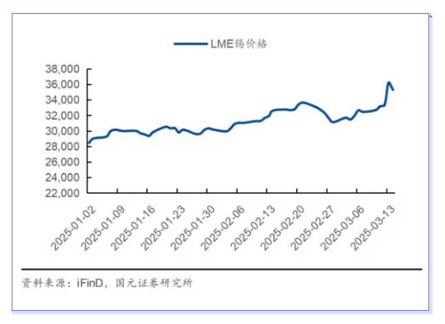 近日Bisie礦山運營商AlphaminResources宣布,已暫時停止剛果(金)東部礦山的運營。Bisie是全球第三大錫礦,2024年錫精礦產量達17.300噸,占全球錫礦供應量的約5.7%。此外,非洲最大錫礦山Alphamin因剛果金戰亂停止生產,該礦山2024年四季度產量達5200噸,占全球錫礦產量約6%。