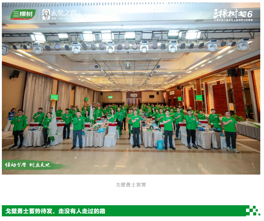 6月4日,三棵樹第六屆玄奘之路領(lǐng)導(dǎo)力實(shí)踐營(yíng)(簡(jiǎn)稱“戈6”)集結(jié)儀式在甘肅瓜州隆重舉行。三棵樹高效奮斗者與優(yōu)秀合作伙伴齊聚一堂,在點(diǎn)將臺(tái)前點(diǎn)將授旗,共同吹響了出征的號(hào)角。此次戈6.三棵樹將挑戰(zhàn)前所未有的極限領(lǐng)域——玄奘之路AB段,以“超越自我 永遠(yuǎn)向上——走沒有人走過的路”為主題,開啟一場(chǎng)精神與體力的雙重淬煉之旅。