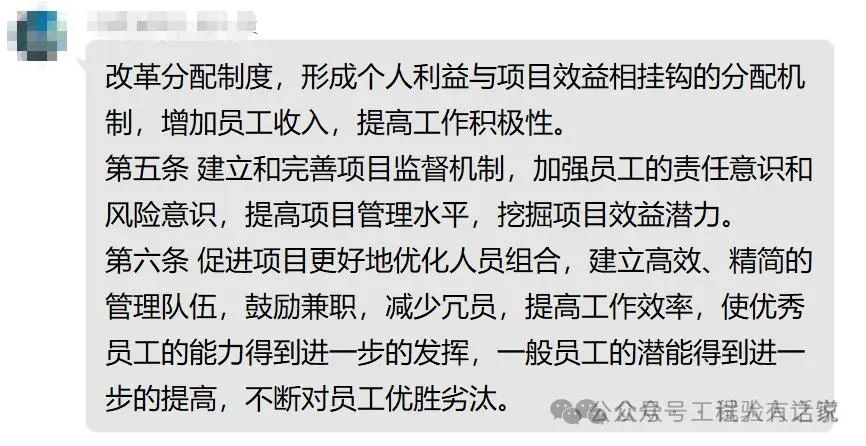 網(wǎng)傳此舉旨在通過“項目模擬股份制”,將員工利益與項目效益深度捆綁,公司方面還表示,這一制度設計的初衷是調(diào)動員工積極性和責任心,強化項目團隊與公司風險共擔的意識,進而促進項目降本增效,實現(xiàn)企業(yè)與個人利益的雙贏。然而,這一初衷良好的改革措施卻在實際執(zhí)行中引發(fā)了諸多爭議,被指可能存在企業(yè)向員工轉(zhuǎn)嫁風險的嫌疑。