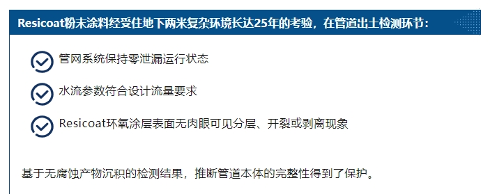 經德國公法機構與水務行業協會聯合研究驗證,并由MPA Hannover材料測試認證機構(防腐評估與管道測試認證領域權威)背書,阿克蘇諾貝爾Resicoat環氧粉末涂料在德國巴特本特海姆完成25年實地測試,證實其可為飲用水供應系統構筑長效防腐屏障。