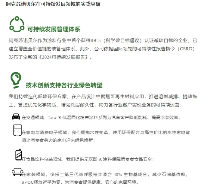 在近期公布的 2024 - 2025 福布斯中國可持續(xù)發(fā)展工業(yè)企業(yè)系列評選結(jié)果中,阿克蘇諾貝爾憑借其在綠色技術(shù)革新、ESG 管理體系構(gòu)建,以及全產(chǎn)業(yè)鏈碳減排等方面的卓越表現(xiàn),成功入選 “2024 - 2025 福布斯中國可持續(xù)創(chuàng)新發(fā)展企業(yè)”。這一榮譽(yù)的獲得,有力地證明了阿克蘇諾貝爾在中國工業(yè)可持續(xù)發(fā)展道路上的領(lǐng)航地位。