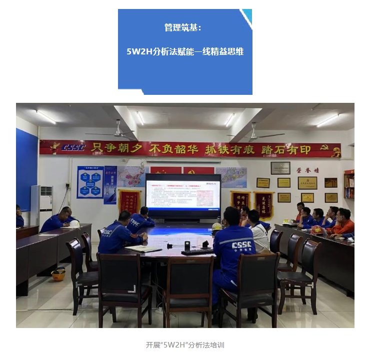 文沖修造機(jī)電工程部著力推動(dòng)精益管理理念扎根基層。通過(guò)專題培訓(xùn)“5W2H”分析法,結(jié)合“珠江橋”輪修理實(shí)例進(jìn)行實(shí)戰(zhàn)演練。該方法為工段長(zhǎng)、班長(zhǎng)、工藝員提供了系統(tǒng)化的問(wèn)題剖析與解決框架,精準(zhǔn)定位瓶頸、優(yōu)化流程、提升效率,是生產(chǎn)管理向精細(xì)化、科學(xué)化邁進(jìn)的有力工具。