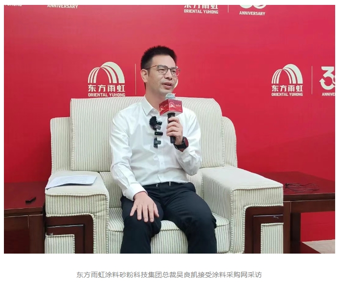 作為涂料行業的專業的新媒體服務平臺,涂料采購網應邀出席此次會議,并就東方雨虹砂粉業務的增長秘訣、企業的發展優勢等方面的問題采訪了東方雨虹涂料砂粉科技集團總裁吳良凱。