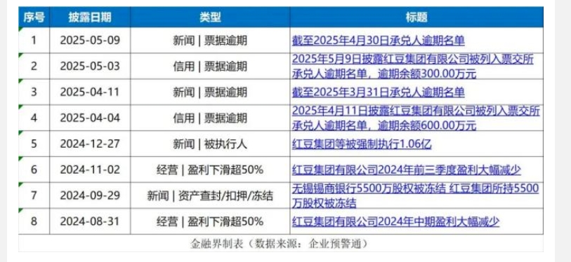 紡織行業,紅豆集團有限公司因連續 6個月內發生3次以上票據逾期,且存在月末逾期余額。票據逾期對企業融資鏈的負面影響具有傳導性,紅豆集團持有的無錫錫商銀行5500萬股權已于2024年9月被上海金融法院凍結,凍結股權僅占銀行總股本的2.75%。