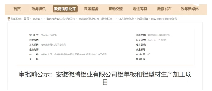 根據(jù)建設(shè)項(xiàng)目環(huán)境影響評(píng)價(jià)審批的有關(guān)規(guī)定,經(jīng)審查,我局?jǐn)M對(duì)安徽徽騰鋁業(yè)有限公司《鋁單板和鋁型材生產(chǎn)加工項(xiàng)目》進(jìn)行審批。為保證審查工作的嚴(yán)肅性、公正性,現(xiàn)將擬作出審批意見(jiàn)的環(huán)境影響評(píng)價(jià)文件基本情況予以公示,公開(kāi)征求公眾意見(jiàn)。