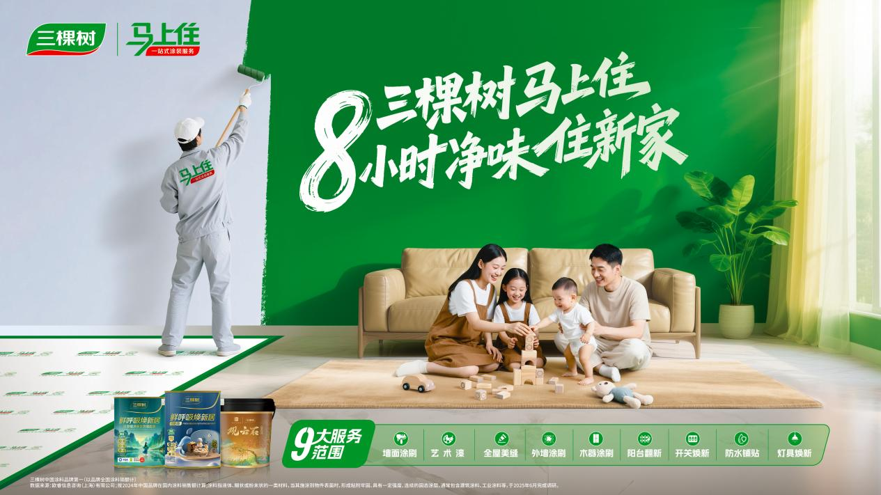 錘錘的案例正是三棵樹馬上住服務精準解決都市人居住痛點的縮影。直面消費者對家居翻新“環保、高效、品質”的迫切需求和對“好房子、好生活”的深切期待,三棵樹始終以用戶體驗為核心,構建了獨特的“產品+服務”美好生活交付體系,不僅提供通過嚴苛“健康+”標準的三棵樹全系列健康產品及配套輔料,更創新推出“省心省力、8小時凈味住新家”的一站式感動服務,徹底解決舊房翻新痛點。