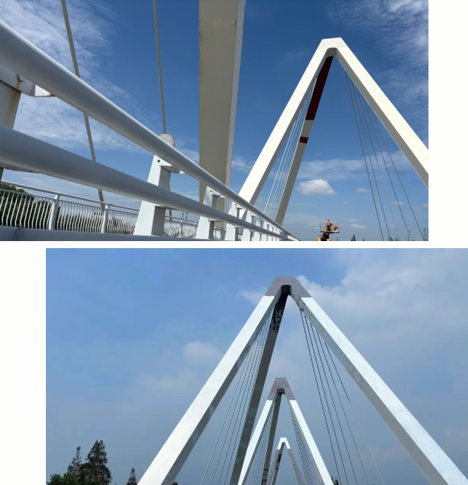 項目兼顧視覺協調與地域文化表達,通過多種顏色定制化調配,使大橋在煥然一新的同時,保持與生態景觀的深度融合,漆膜細膩、質感高級,在提升行車舒適性與安全性的同時,亦成為區域一道亮麗的風景線。