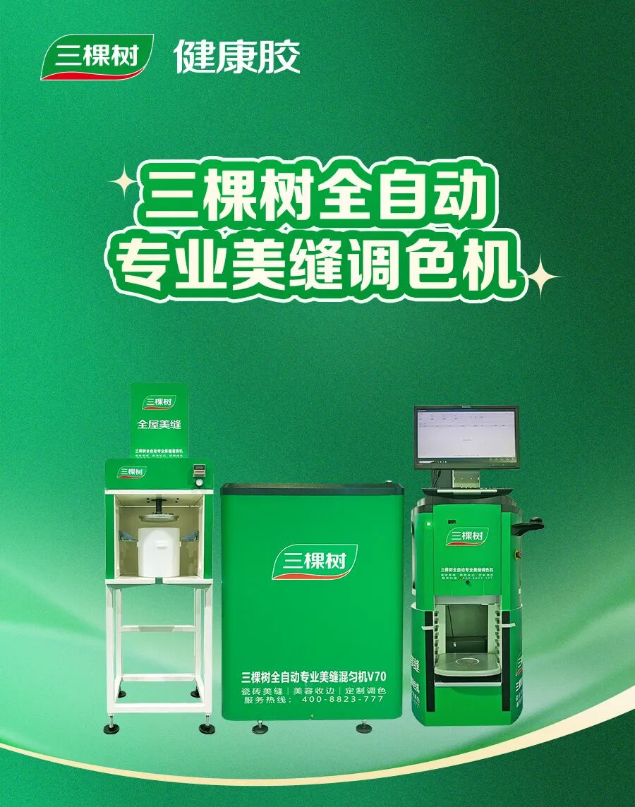 在智能化端,三棵樹以科技提升便捷與個性:推出全自動專業美縫調色機,支持瓷磚顏色定制匹配,適配99%以上家居風格;上線“全屋美縫小程序”,實現線上預約、進度跟蹤,結合線下300多家覆蓋建材市場與社區的專賣店,讓美縫服務更高效、更透明。