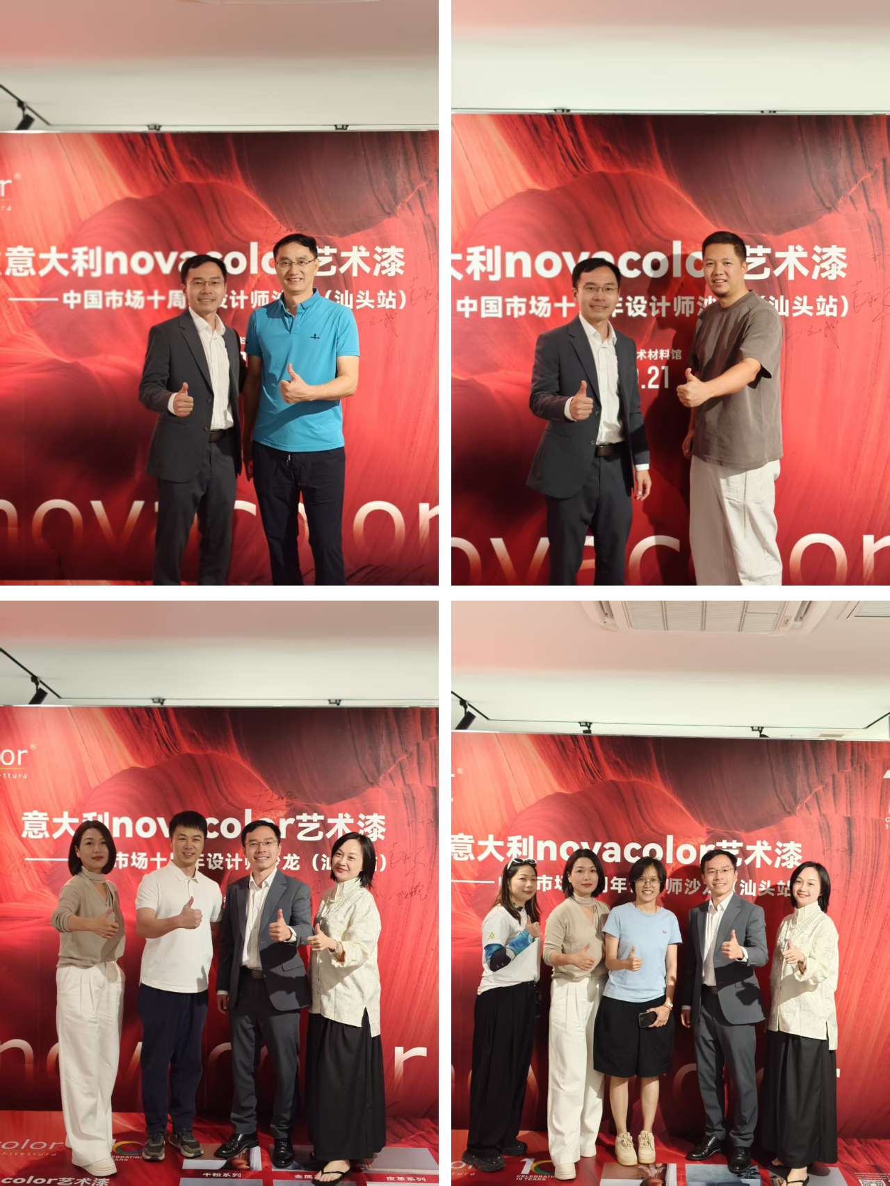 汕頭,是Novacolor中國十周年巡禮的一站,卻也是我們深耕中國市場理念的集中縮影。我們的使命,從未改變:作為意大利頂級藝術(shù)漆的使者,我們引入的不僅是產(chǎn)品,更是一種關(guān)于生活美學(xué)的標(biāo)準(zhǔn)。我們的模式,始終進(jìn)化:通過賦能像諾可藝術(shù)材料館這樣的卓越伙伴,我們共同構(gòu)建了一個 “品牌-經(jīng)銷商-設(shè)計師-施工方” 的價值共生體,讓每一份創(chuàng)意都能找到完美落地的土壤。